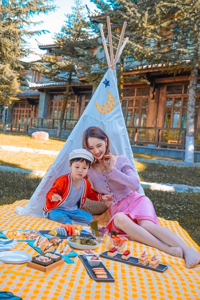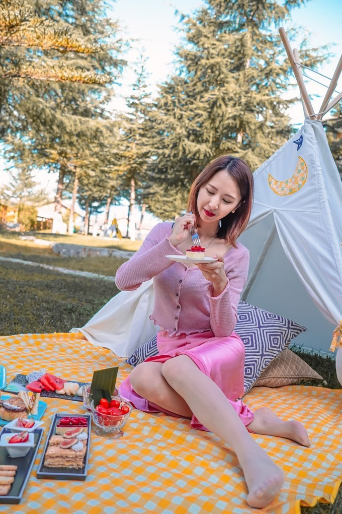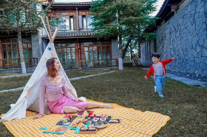 这就是我向往的度假生活呀,草坪、野餐垫、帐篷、美食、阳光,我似乎又找到了另一个爱上 丽江 的理由。