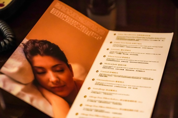 水疗内的套餐有很多种,可以根据自己的喜好选择,工作人员会很细心的讲解每个SPA不同的功效,有些适合肩颈背的放松,有些适合腿部等等,我最终选择了泰式精油按摩,来缓解这几天抱娃的肩颈酸痛。