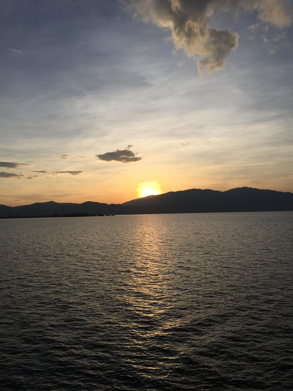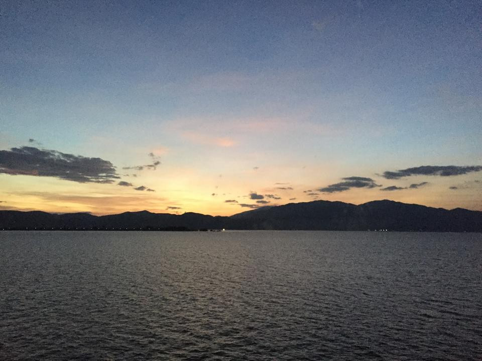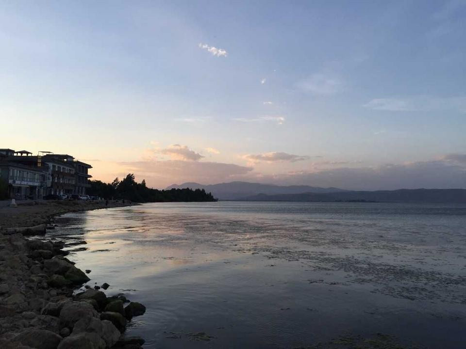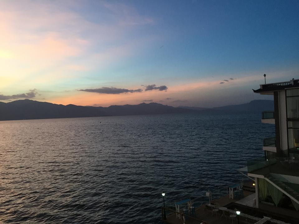 整块落地窗对着洱海, 床的顶上也是玻璃, 窗帘拉开以后, 睡着床上可以看日出, 可以看星星, 可以看洱海,浴缸直接放在大落地窗旁边,也就是泡浴缸也可以看洱海,而且还不用担心被偷看。享受了。