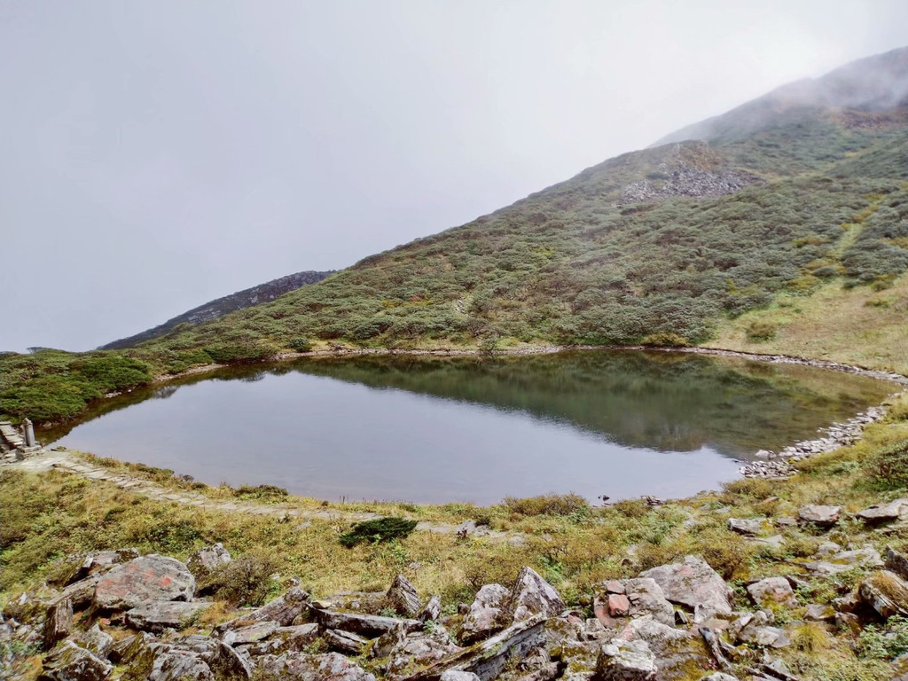 今天的行程是普达措国家公园, 普达措国家公园是国家AAAAA级景区,普达措国家公园距离香格里拉市22公里,海拔3500-4159米,是'三江并流'风景名胜区的重要组成部分.以碧塔海,属都湖和弥里塘亚高山牧场为主要组成部分,也是香格里拉旅游的主要景点之一.从香格里拉市到普达措路面情况很差开车大约1个小时,在景区大门口换乘景区大巴车约20分钟到属都湖湖边,属都湖沿湖栈道3.3公里,不到1.5小时就游览完了,由于今天一直在下雨,晴天的那种天有多蓝水有多蓝的美景是看不到了,普达措国家公园跟我的期望值反差太大,普达措国家公园应该包含碧塔海,属都湖和弥里塘亚高山牧场等景区,现在碧塔海和弥里塘亚高山牧场在3年前已经不对游客开放,仅有属都湖3.3公里的环湖步道对游客开放,它已经不是完整的普达措国家公园,我觉得景区在游客预订景区门票时应该事先告知说明,以免游客游览后感到失望.从普达措回到香格里拉独克宗古城,找了一家网红藏餐厅吃饭,这家餐厅'极限挑战'节目组曾经在此录过节目.我们在餐厅点了一个套餐,套餐有酥油茶,青稞饼,烤香菇还有牦牛肉火锅,这里的菜品比昨天在藏民家的菜要好吃很多.
