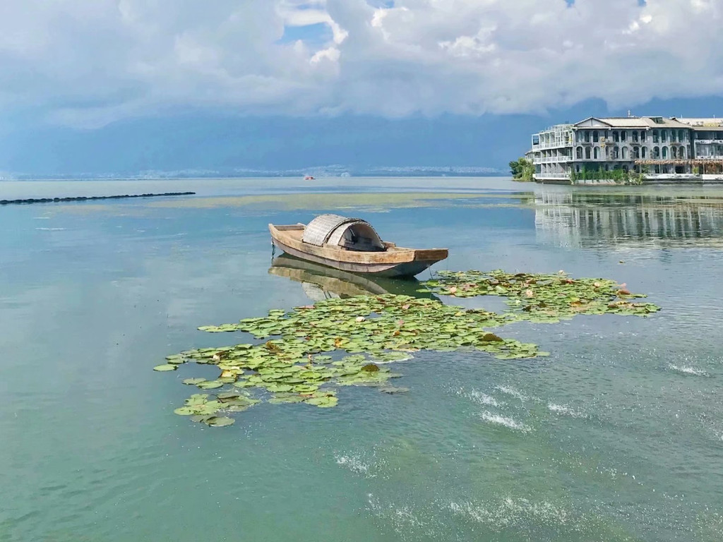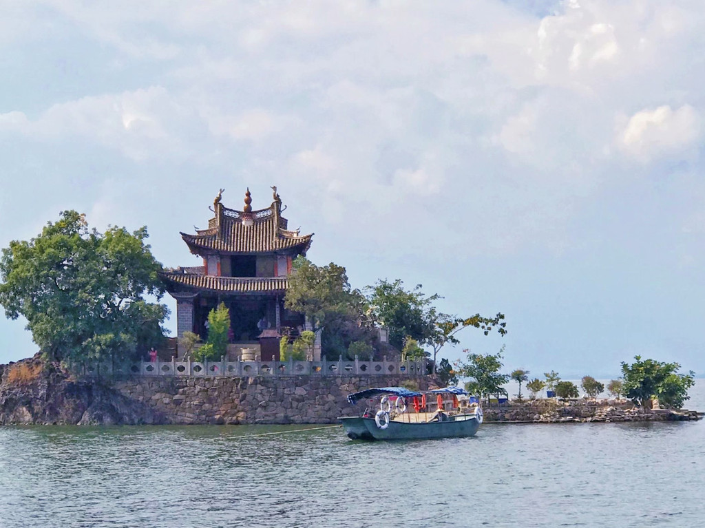 今天睡到自然醒,然后到古城的老字号米线店吃了一碗米线.今天我们去洱海边游玩,在古城东门的公路边有中巴车到洱海有名的景点双廊,票价15元/人.我们在路边等中巴时有司机搭讪拼车到双廊30元/人,后来有一个车差2人拼满谈成20元/人到双廊,从古城到双廊开车大约50分钟.还可以在古城租汽车环海游,也可以租大功率的电动自行车环海游.电动自行车的租金80-100元/天,从古城到双廊约55公里,骑电动车需要1小时还是有点累的,现在虽然是旅游淡季,双廊的游客还是比较多,双廊有很多出租敞篷跑车的商家,敞篷跑车有各种鲜艳的颜色非常漂亮,有很多年轻情侣租跑车环海拍照.也有很多人租电动自行车环海游,我们在双廊租了个电动自行车50元/天,押一张身份证不用押金.我们从双廊一路游玩到挖色和小普陀,然后回头又到双廊,遗憾的是蝴蝶泉跟小普陀是相反的方向,想到蝴蝶泉去玩时间已经不够了,还了自行车乘坐中巴回到大理古城,在古城的'洱月小厨'团购了一个2人份菌菇火锅,团购的菌菇火锅是全素的,没有肉的火锅是不完美的,所以,我们另外配了一盘牛肉卷,吃完饭又在大理古城逛了一会回民宿休息.