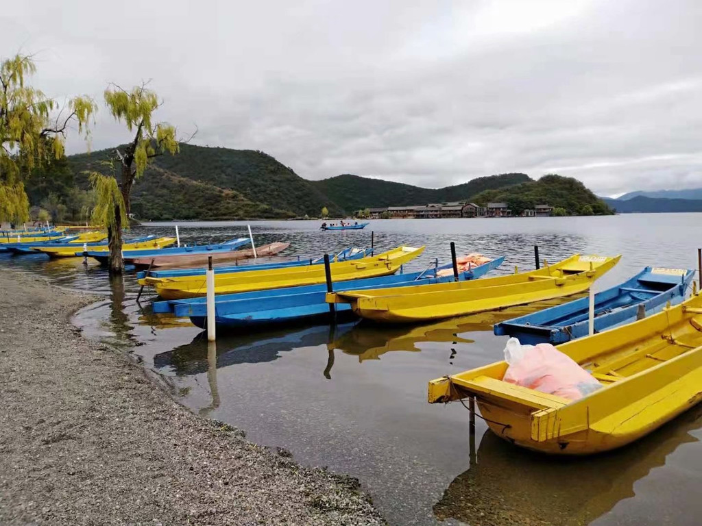 今天继续游览泸沽湖,早餐后9:20分我们乘车到码头边乘坐猪槽船,近距离感受泸沽湖的美,泸沽湖湖水清澈见底据说湖水可以直接饮用,靠近湖岸边开着一丛丛的白色的花,当地人管它们叫:'水性杨花'花.中午11点多钟我们结束了泸沽湖的行程开车返回丽江.下午5点钟左右回到丽江古城北门,吃过晚饭后再次夜游古城.