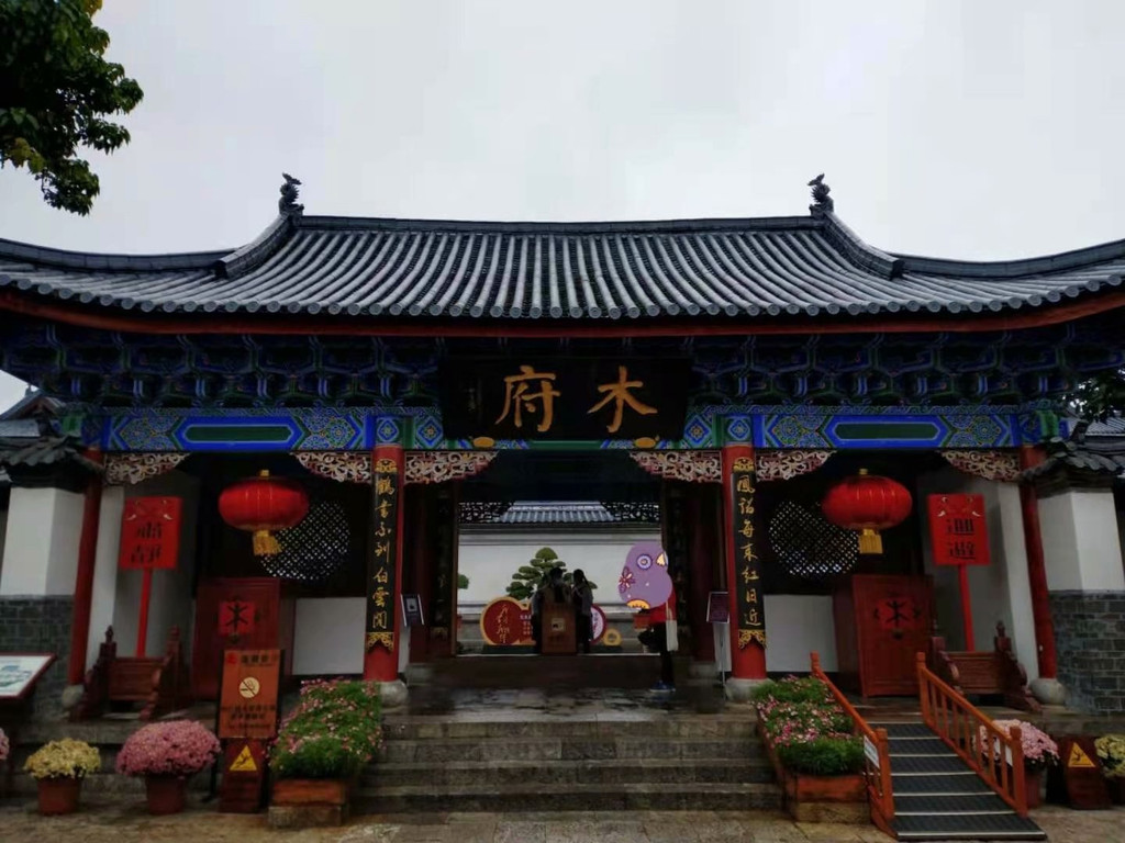 早晨8:10分司机师傅就到酒店接我们,今天的行程是到石卡雪山,石卡雪山是国家AAAAA级景区,海拔4500米,距离独克宗古城仅7公里,是藏民心中的神山.从酒店开车十几分钟就到了石卡雪山景区门口,结果石卡雪山的工作人员说;石卡雪山开始进入维护期,暂停开放1个月,这次我们是没有办法游览石卡雪山了.经过协商旅游公司退回了游览石卡雪山的费用,我们决定返回丽江,经过4个多小时的车程又回到丽江,办好住宿休息了一会,再次来到'阿婆腊排骨'吃饭,吃完饭我们前往木府游览,有人说:北有故宫,南有木府.可见木府还是非常值得期待的.木府位于丽江古城,是丽江木氏土司当年在丽江的宫殿,纳西民族首领木氏自元代世袭丽江土知府以来,历经元明清三代22世470年,所以木府是当年丽江地区政治,文化中心.电视剧<木府风云>就是在这里拍摄的.木府是国家AAAA级景区,门票价格40元/人.木府虽然没有故宫那么恢宏,但是作为一个地方的土司府规格还是非常高的,游览木府还是一个了解纳西族文化的窗口,有很多纳西族生活和风俗情景的展示.