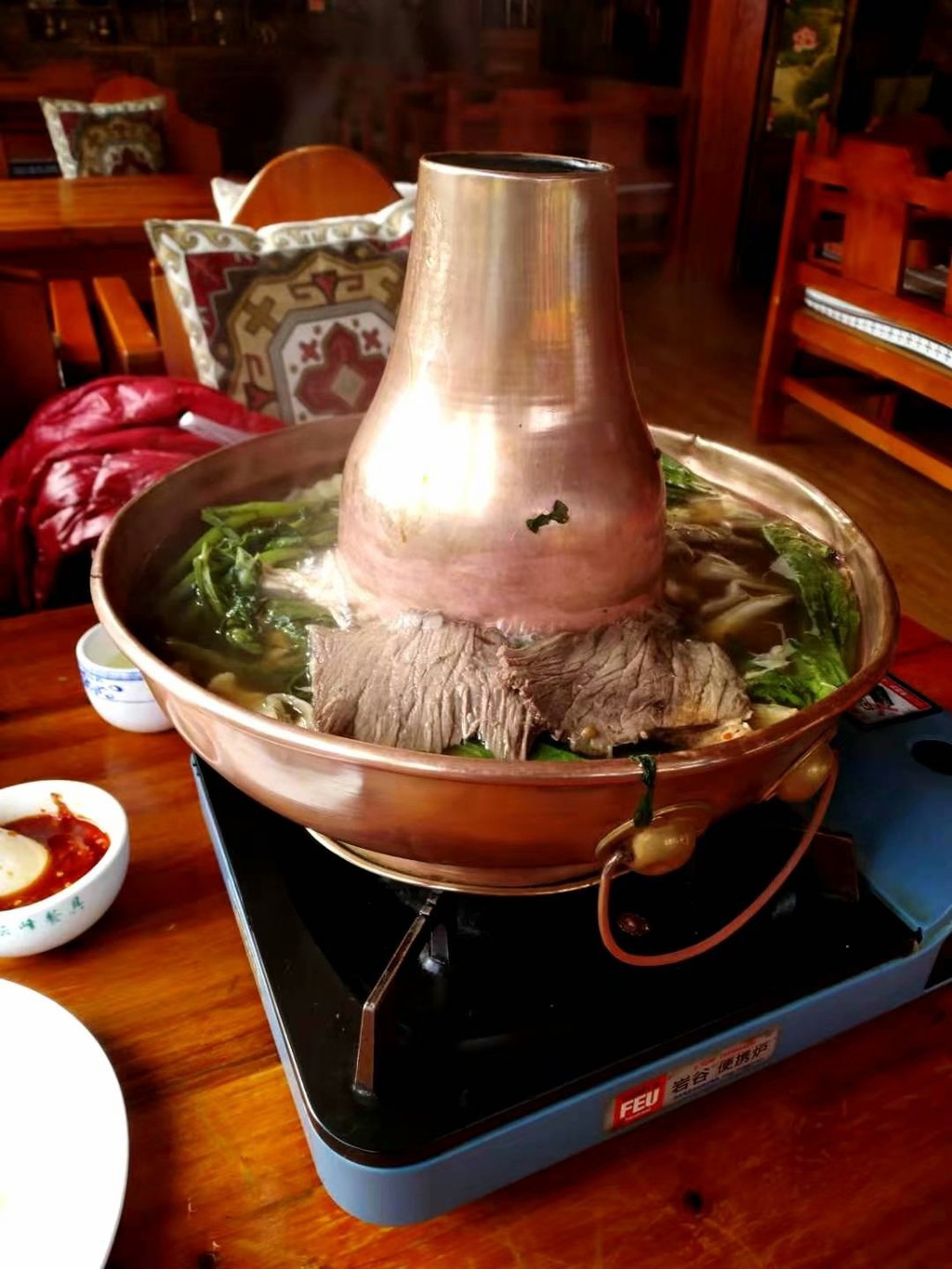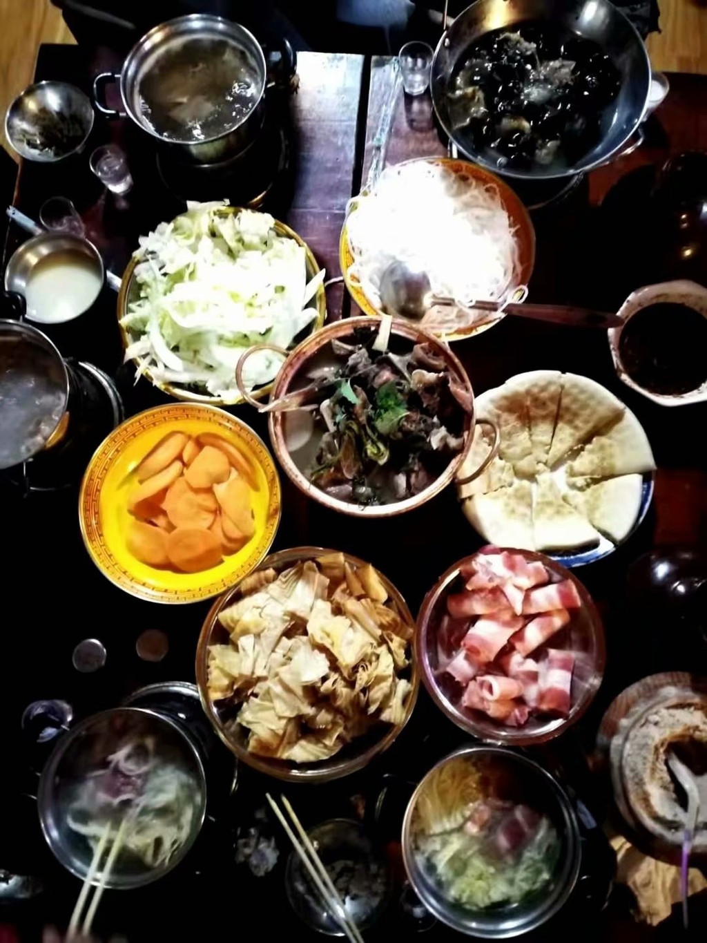 今天我们乘坐提前定好的大巴车到丽江,民宿老板开车送我们到大理古城南门垒翠园客运站,上午9:30分开车大约12:30分到丽江古城南门,乘坐出租车到丽江古城北门打表11.9元.我们在丽江定的民宿,距离北门仅几分钟的路程,丽江古城内的地面跟大理一样也是石块路面坑坑洼洼.下了出租车后打电话给民宿老板,民宿老板到北门帮我们将行李箱提到民宿,安排好房间休息了一下.大约下午2点钟出门吃饭,在'阿婆腊排骨'店点了一份纳西族美食腊排骨火锅,腊排骨火锅味道鲜美,有一种独特的烟熏香味,价格不贵性价比很高.