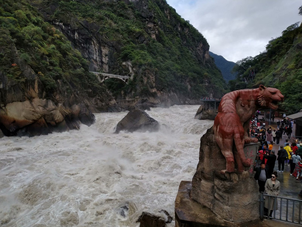 虎跳峡景区是国家AAAA级景区,景区就在由丽江到香格里拉的路途之间,距离丽江市80公里,距离香格里拉96公里,从丽江开车到虎跳峡镇约3小时,发源于青海格拉丹东雪山的金沙江千里迢迢奔波到此,突遇玉龙雪山和哈巴雪山两座雪山的阻挡,原本平静祥和的江水顿时变得怒不可遏,虎跳峡是万里长江第一大峡谷,横穿于哈巴和玉龙雪山之间因猛虎跃江心石过江的传说而得名.金沙江的南岸是丽江的玉龙雪山,北岸是香格里拉的哈巴雪山.