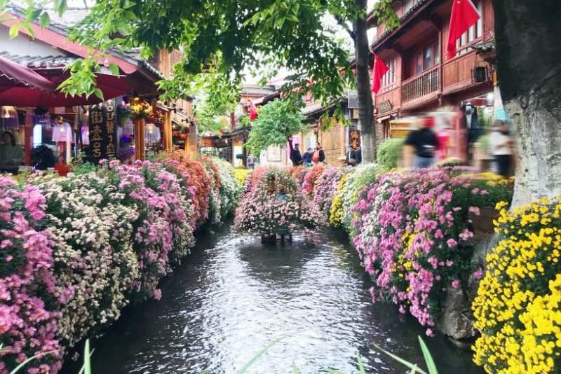 从木府出来我们继续在丽江古城闲逛,逛丽江古城有个好方法,那就是沿着河水走不会迷路风景也非常好.河边种满了各种多肉和漂亮的鲜花,漫步在河边,耳闻潺潺的流水满眼的鲜花,真的希望时光能够定格在此.在丽江古城一直逛到晚上,出古城吃了晚餐,结束了今天的行程.