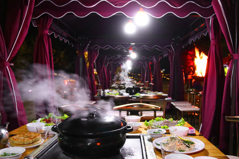 猎鹰谷结合今年形势以及未来趋势,利用它位居自然山水之间又直面玉龙雪山的独特景观,开发出适合丽江气候、民族风情、家庭聚餐以及独行客的美食需求,以户外烧烤、火塘人家、私人订制等菜品呈现。