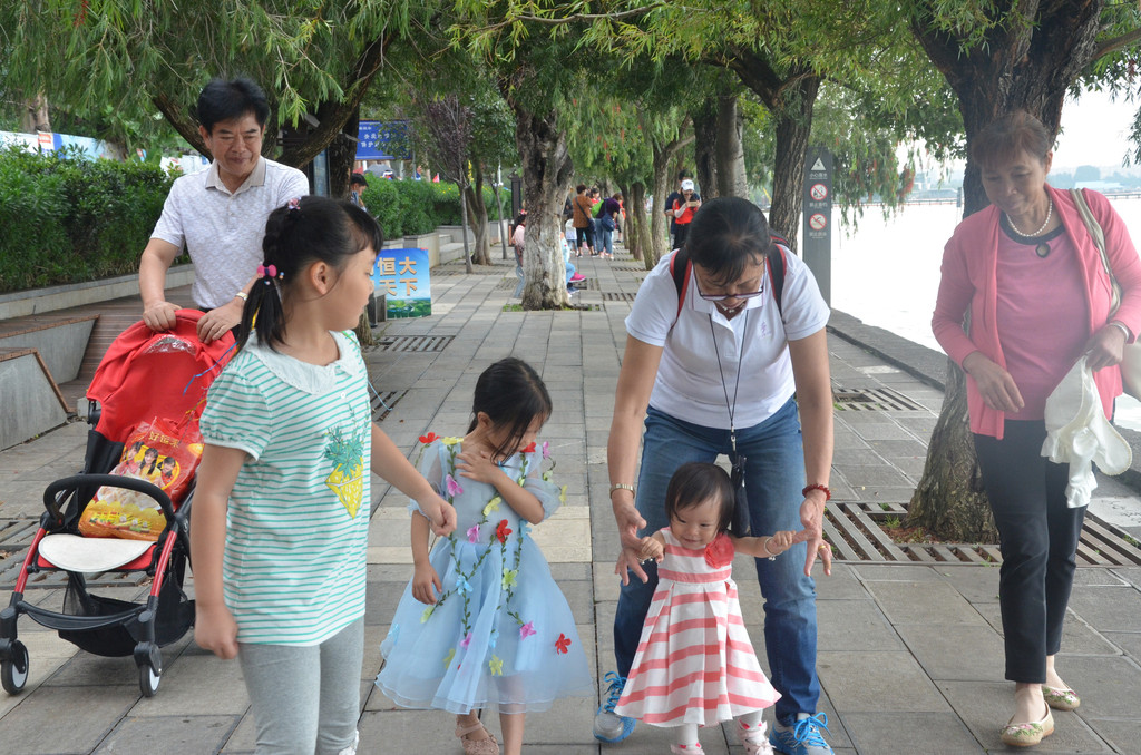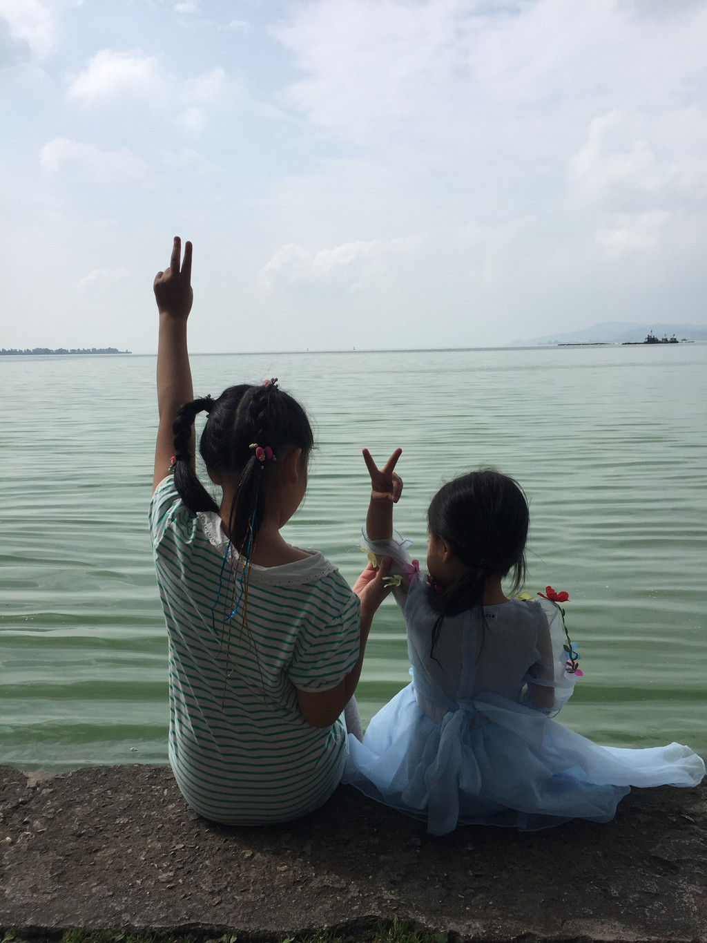 今天上午稍微晚点起来,起来后和萱萱一家一起去了滇池游玩。团团这会正在学走路,两个小姐姐带着她走得好开心哦。