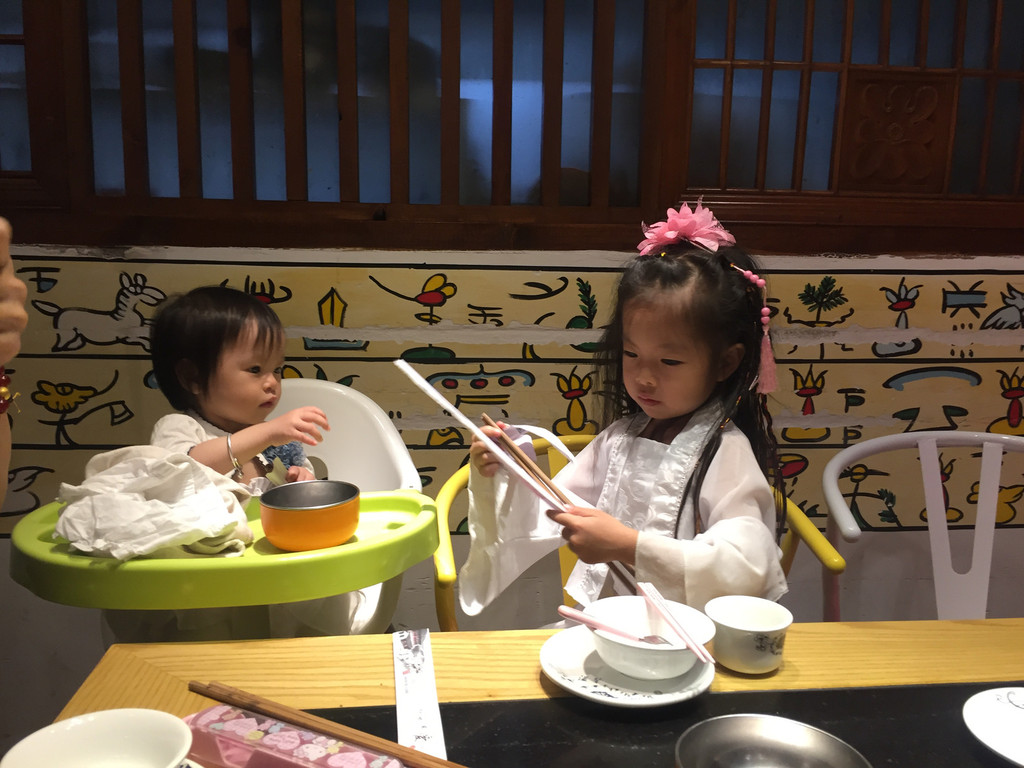 参观快结束的时候,大小宝都睡着了,午餐吃鸡火锅。