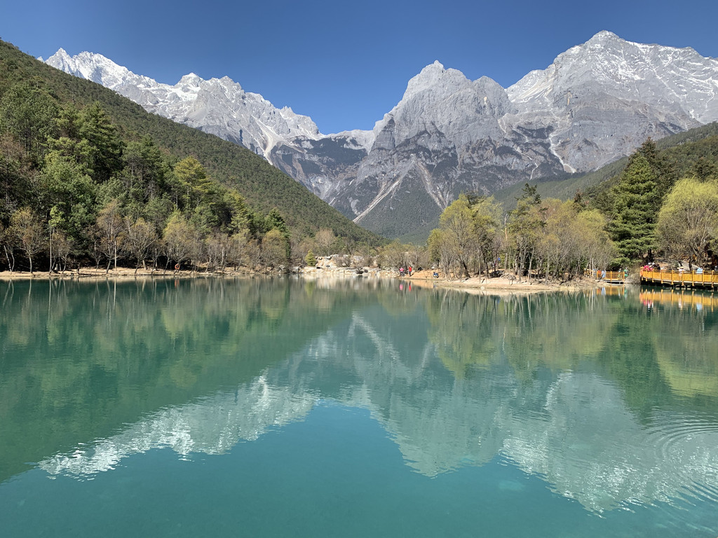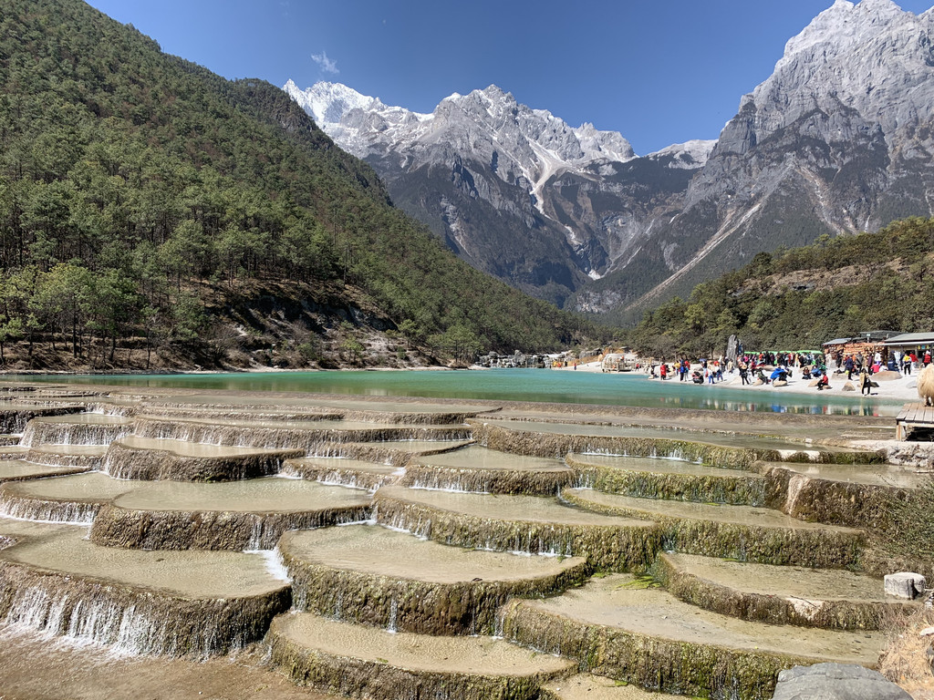 第一天的安排是找了个当地导游,开着车带我们各个景点小转,当然玉龙雪山是第一个。蓝月谷果然水是蓝的,这个季节是淡季而且不是假日,人不多。一看就是网红打卡地,少男少女各种摆拍,也算来了。其实兴趣不大,几个人徒步走了一圈。