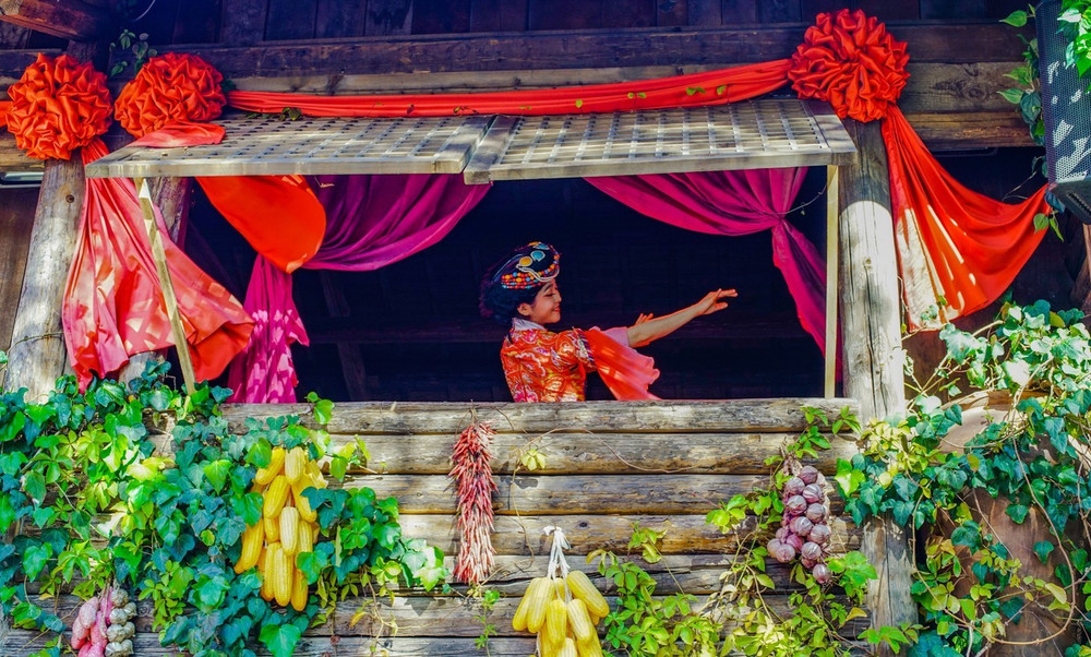 而等快闪结束完,这里绣楼上又开始了木府招婿,接到小姐绣球的男生们可以穿上礼服现场体会一把古代新郎拜堂成亲然后现场撒糖的感觉,棒棒哒!
