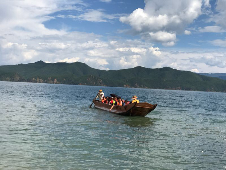 从丽江出发去到泸沽湖要4个小时,一路耍到小洛水村,我们住的酒店是在小洛水村的,很清净的一个开发的不是很成熟的小镇,湖景房,往房间一坐,感觉棒极了,很平静,湖面的水很干净,很平静!坐了猪槽船去泸沽湖的中国钓鱼岛,一个团的人都很开心,返回后自己逛了逛,就去吃当地的特色餐了,那个猪膘肉吓得人够呛,一头猪直接放露天凉干,十年后直接吃,想想都害怕,我只吃了一片,有点想吐!