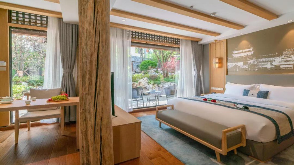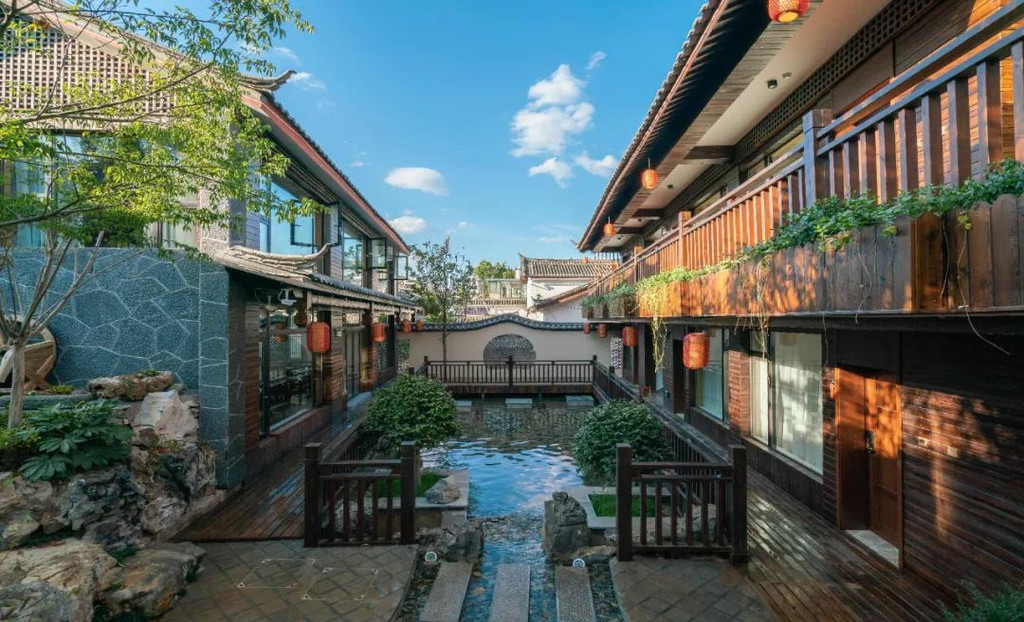 客栈整体参照传统纳西建筑设计,庭院却以苏州园林风格打造,兼具少数民族风情与中国古典韵味。