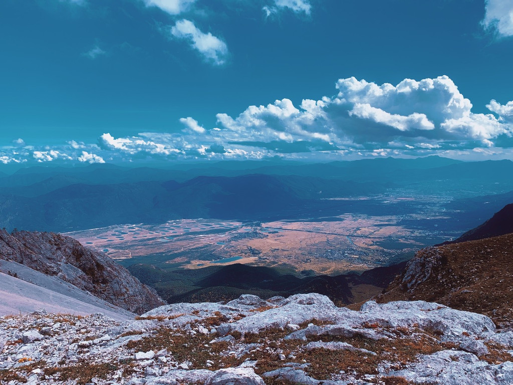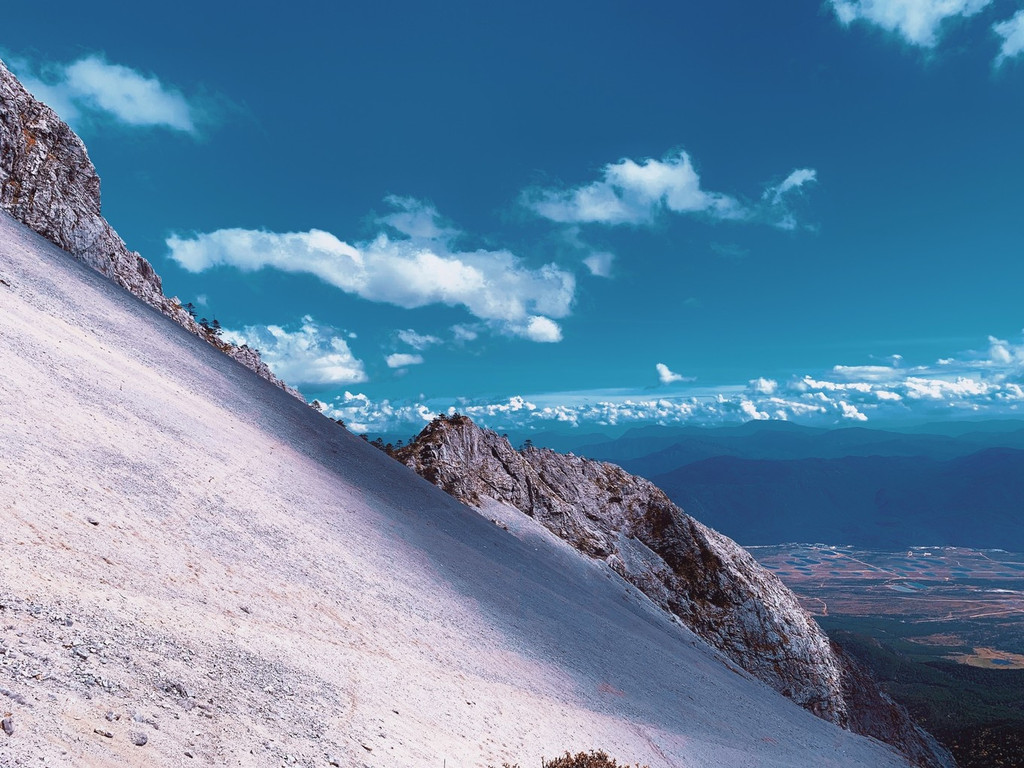 过了流沙坡,就可以俯瞰整个 丽江 了。现在感觉云都触手可及,流沙坡全是小碎石,一定要小心。