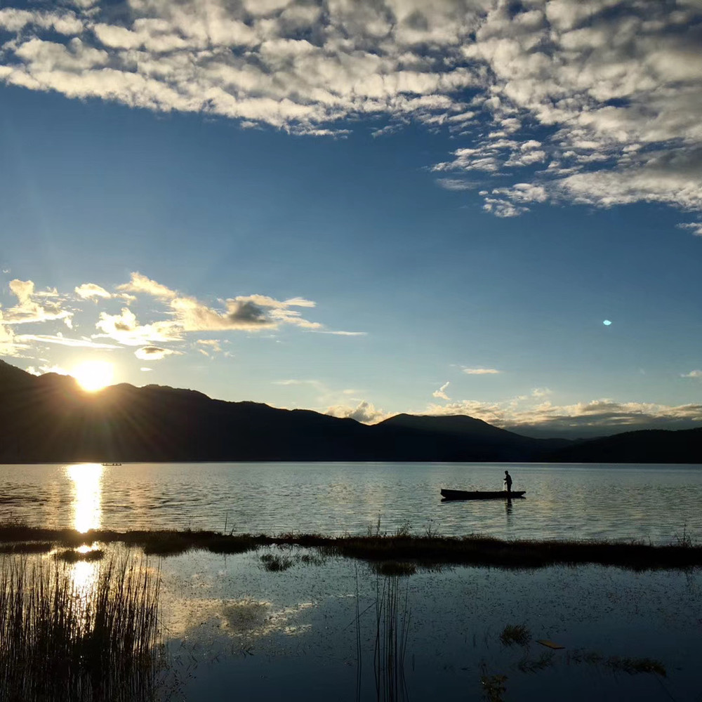 下午返回蒗放,去村子的最西边追日落。晴天的落日更美,渔舟唱晚。