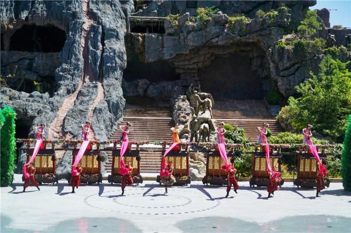 大型歌舞丽江千古情讲诉了丽江的千年文化的变迁,整个演出可以分为五个部分,重现《纳西创世纪》、《泸沽女儿国》、《马帮传奇》、《古道今风》、《玉龙第三国》等,在动情的演绎中,丽江长达千年的历史与传说完美呈现在我们的面前,展现了在这里世代生存的纳西族的智慧与文明。