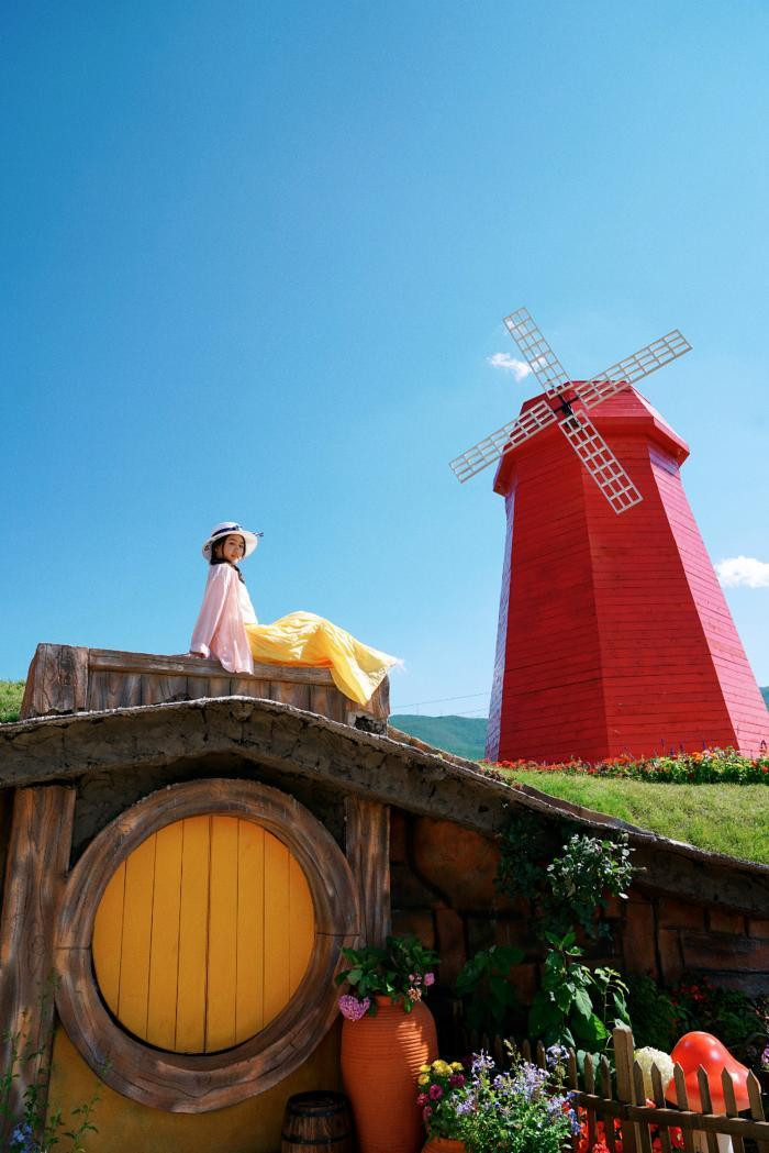 花朵盛放的精灵谷,缤纷的色彩,从眼前一直蔓延到天边,转动的大风车,带来雪山的消息,走进霍比特人小屋小憩一会儿,心情轻松又惬意。
