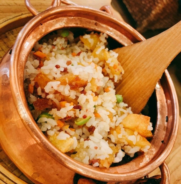 小锅饭很好吃,洋芋稍微有一点点干,不过不影响,依旧好吃。底层的锅巴香香的,我最喜欢吃了
