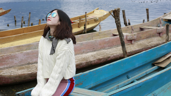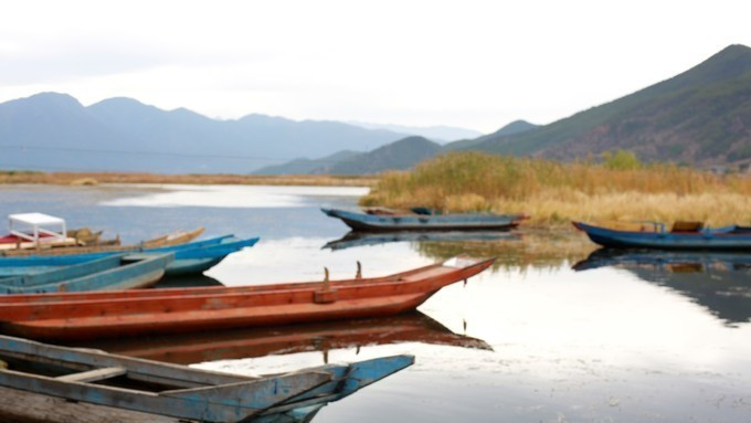 时候这里却奇迹般地碧蓝晴空,不由欣喜。数只小船懒懒地躺在湖面上,好像婴儿熟睡在妈妈的怀中,岁月如斯,静谧怡然。