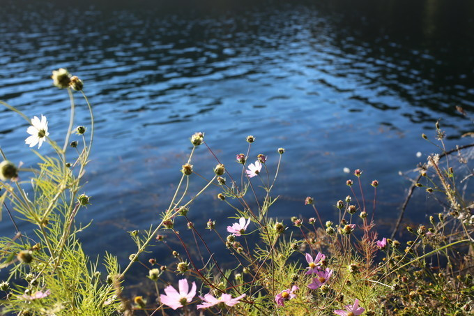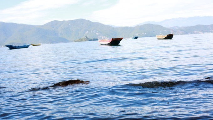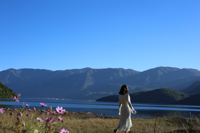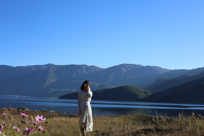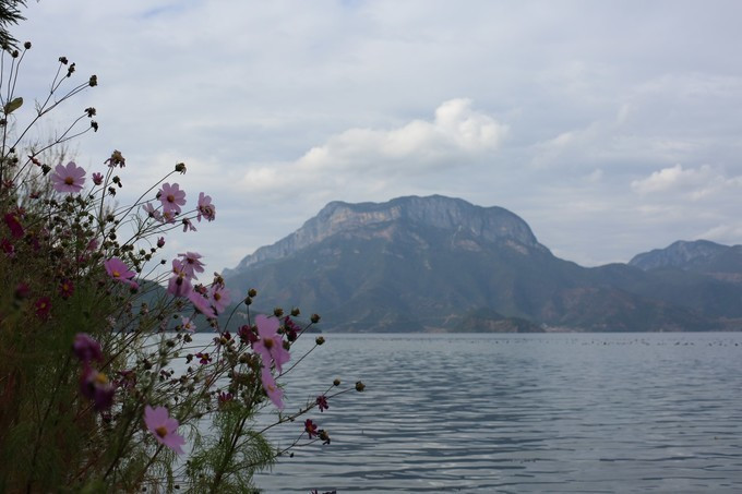深秋的 泸沽湖 ,依然可以见到格桑花,水草在湖水中恣意生长。