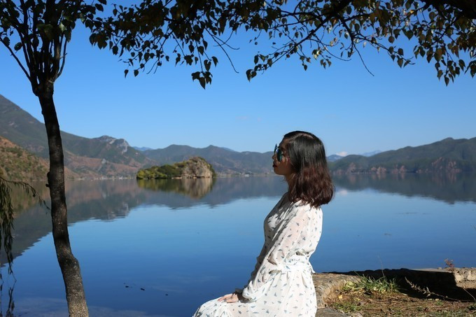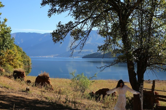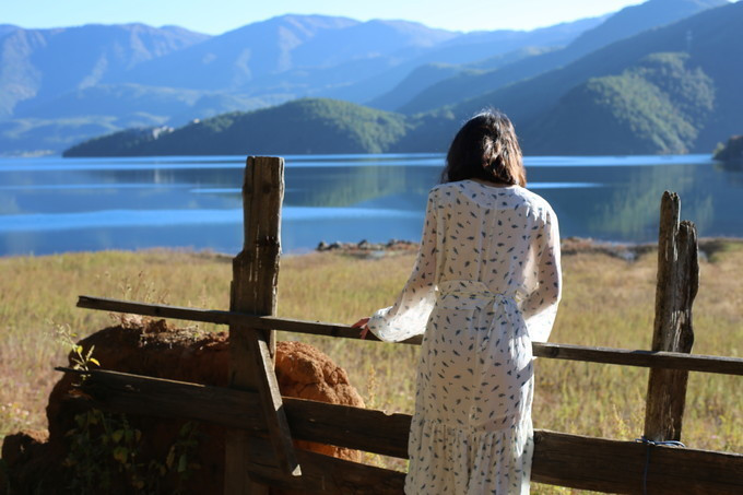 由于我们是从 重庆 直飞 泸沽湖 ,所以我们提前一天到 泸沽湖 ,橙橙家的精品纯玩小团是第二天早上七点才从 丽江 发车到 泸沽湖 的。到了 泸沽湖 后,我们就赶到了定好的客栈。对了客栈也是橙橙安排的湖景房,比我们自己定要优惠好多~还是很谢谢的~安排好入住之后,便在附近转悠了 姆女神山下的小村庄。最开始到的时候有点后悔,因为交通不甚便利,但是来到尼赛村后,便被她与世隔绝的姿态吸引。四五家客栈于湖边一百米处并列而立,窗外是花圃藤蔓,并无车马人群喧嚣,不含一丝杂质的阳光穿透入碧玉般澄澈的湖水,闭眼呼吸,好似置身于千年前安静如画的图卷中。
