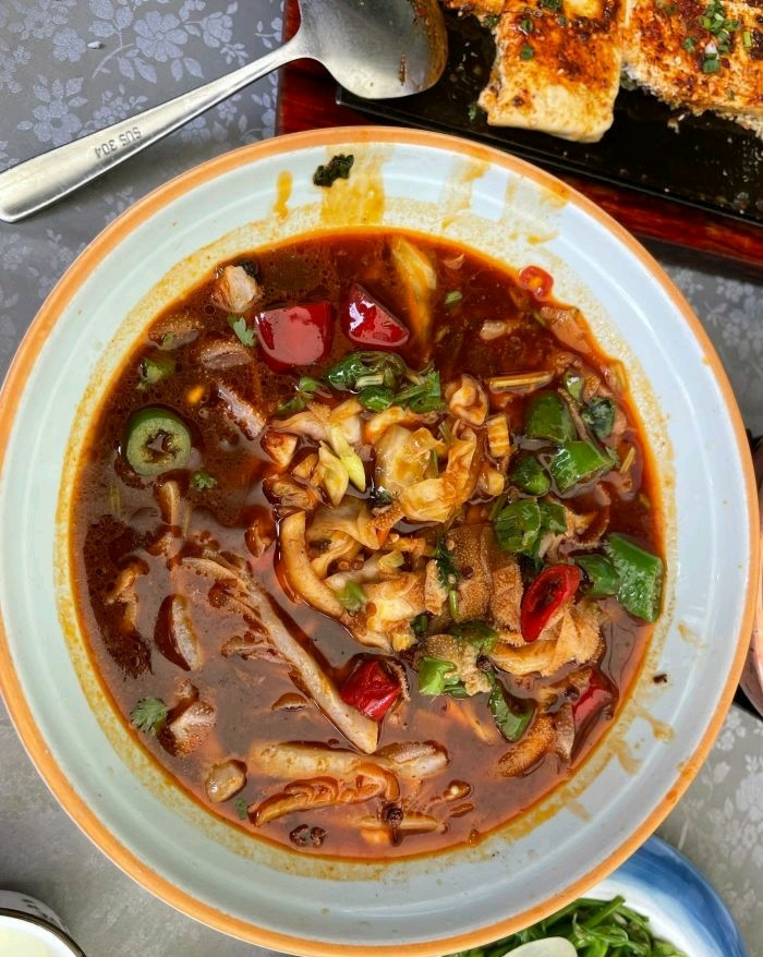 泡菜爆肚这个爆肚看着很辣其实是香辣挺脆的里面的泡菜!重点就是里面的泡菜味道特别酸爽一点都不会觉得酸过头配上毛肚这一口下去味道不要太棒还有很多好吃的…我要去吃了已经快被朋友吃完了