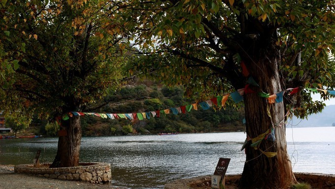客栈外便是情人树了,这两棵树一大一小,相依相偎,瞰览着宁蒗的春夏冬秋,烈日初雪,舒婷想表达的《致橡树》,也许就是如此吧。