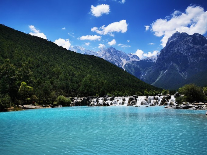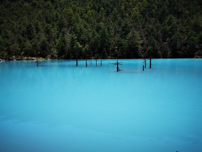 蓝月谷也常被人称为 云南 小九寨,据说它的颜色,也是像 九寨沟 一样会变的。如果是晴天,天空湛蓝,那湖水也会变得像是一颗蓝宝石一般,却又夹杂着一些,薄荷绿色的光芒。如果是雨天,那么这里的水就会变得透明又清澈。真的非常美丽,这次来 丽江 不虚此行了。
