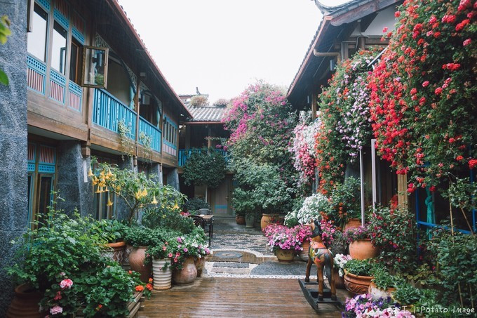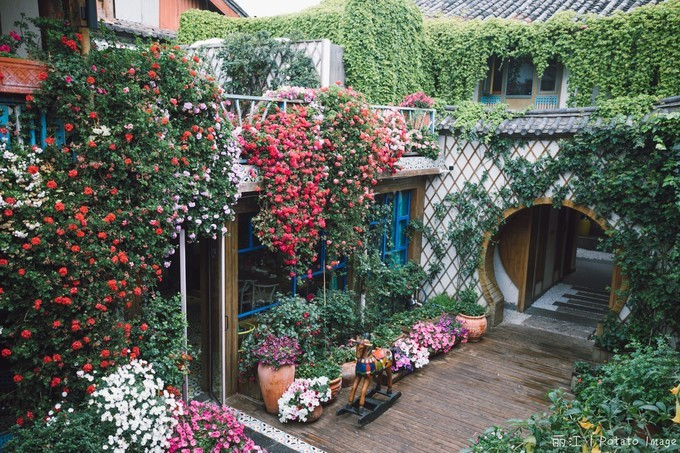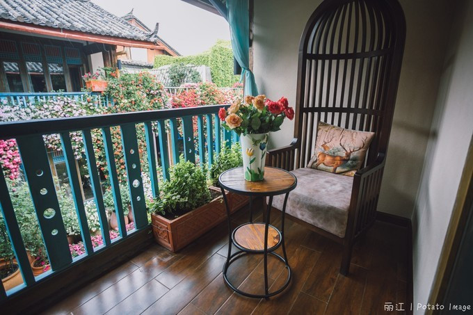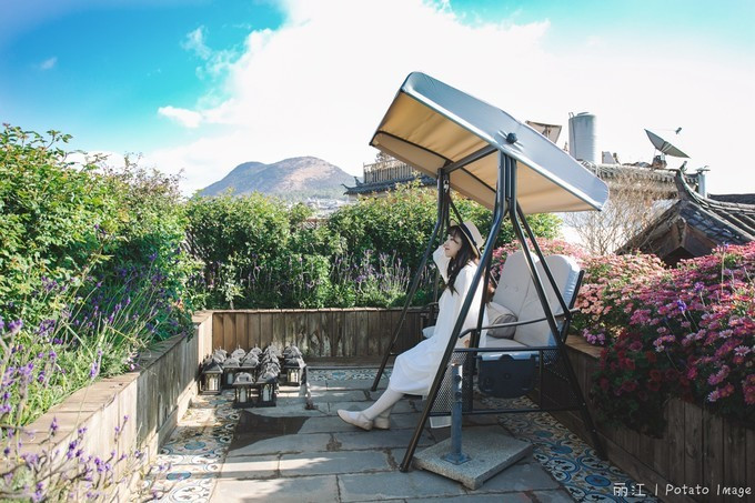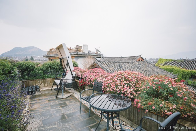 当有太阳的时候,整个房间通透又明亮, 丽江 的温度也随之身高,在客栈里外都可以拍摄到绝美的人像照片,上到楼顶是一个最佳的观景平台,俯瞰一座城。