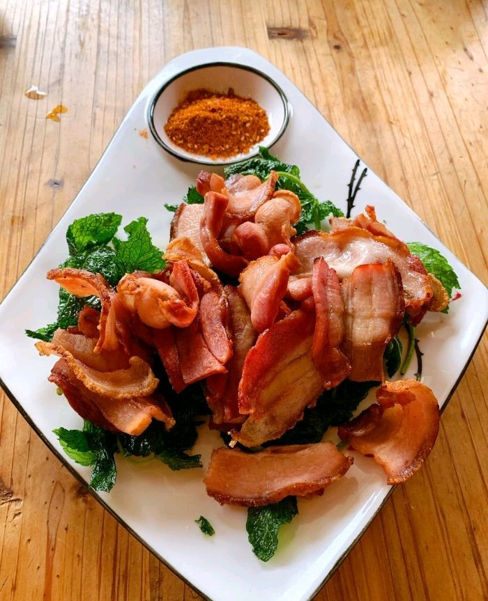 东巴烤肉,烤的很脆,也很香,配上辣椒面,蘸这吃,很棒,口感很好!