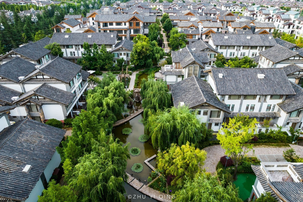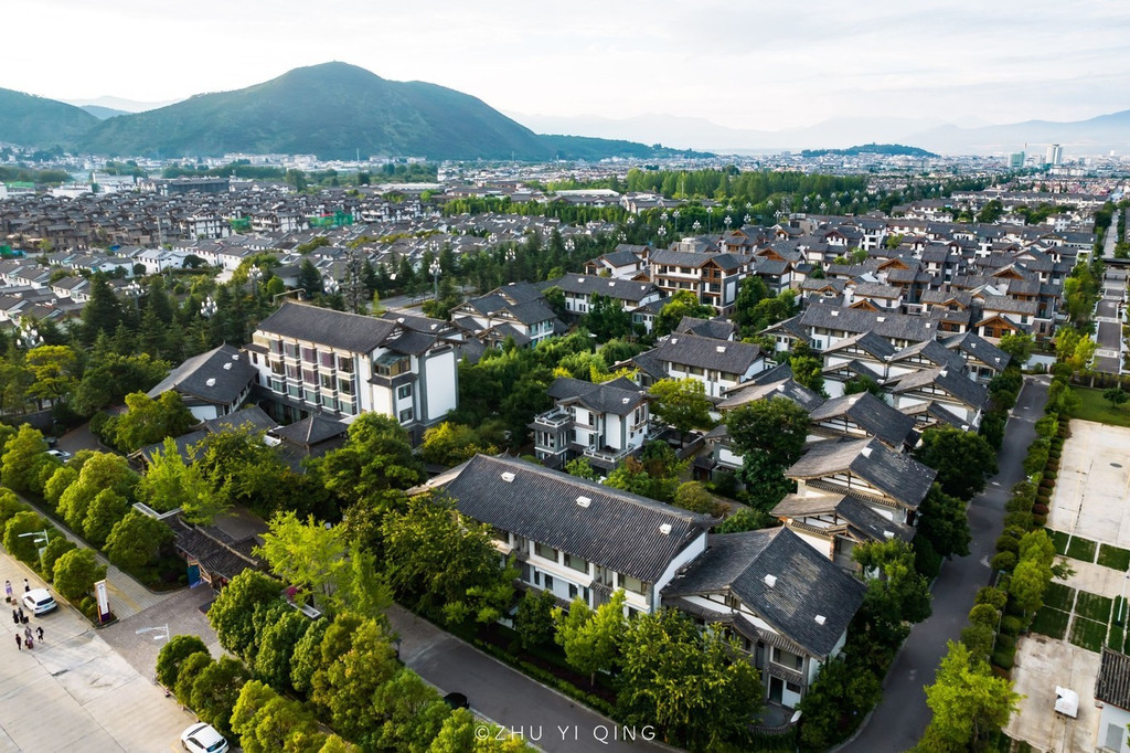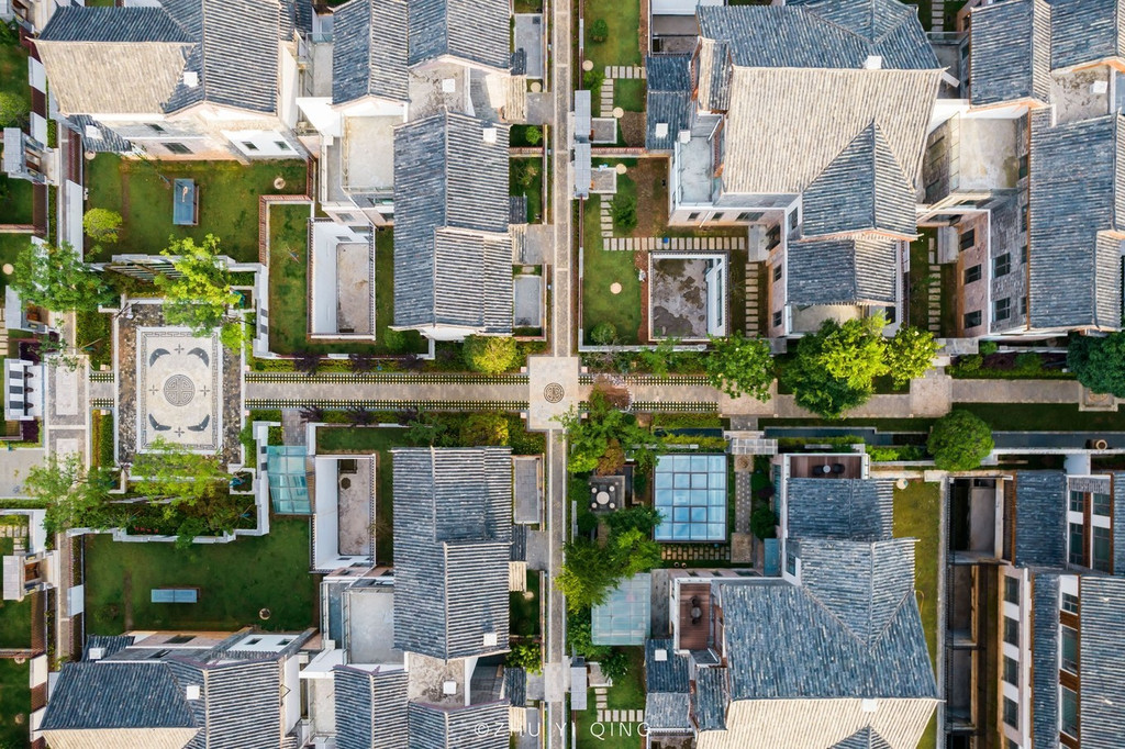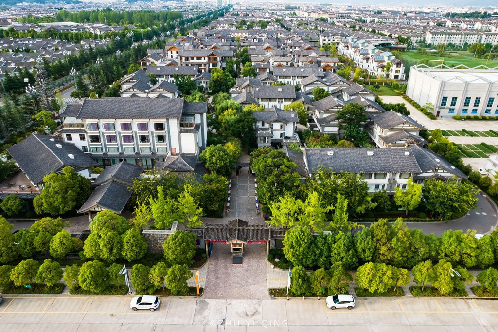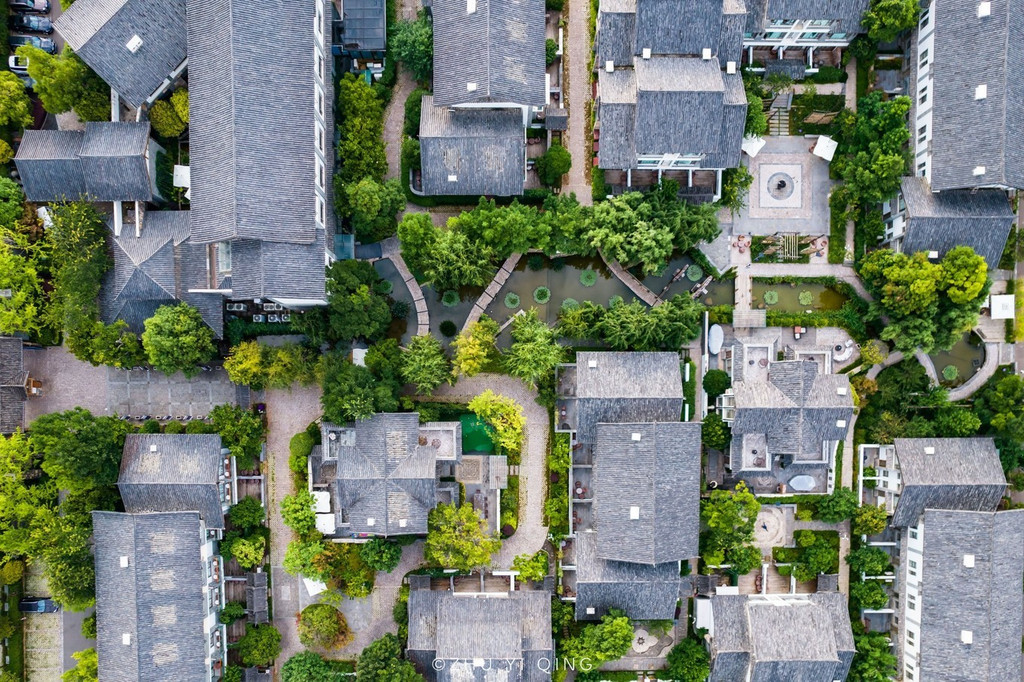 别院全貌将无人机飞上空,才知道别院到底有多大,纳西风格的独栋宅院整齐划一地排列着,远方的雪山若隐若现,在这里度过十一长假,想必也是非常舒适的。