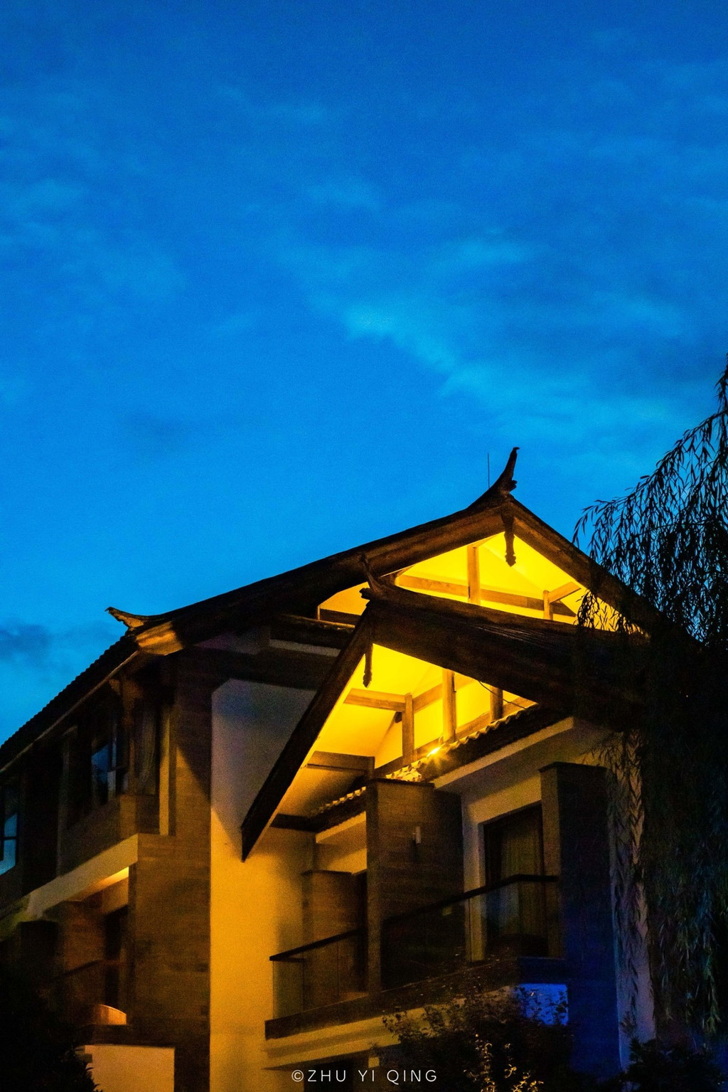 悦云夜色丽江一天最美的景色就是清晨和傍晚,而入了夜的悦云别院,灯光亮起,映着深蓝色的天空,就是一幅梦幻的场景,黄色的灯光在每一栋别墅上亮起,微微照亮着别院,不会太暗也不会太亮,安静的氛围弥漫在整个庭院中,住过了吵闹的古镇后,我发现这样的环境才是我最爱的丽江。