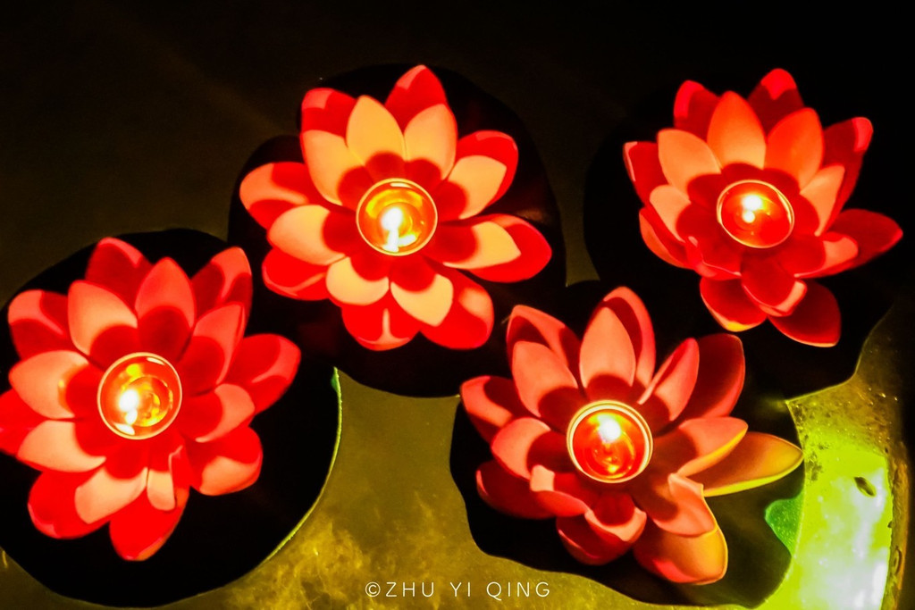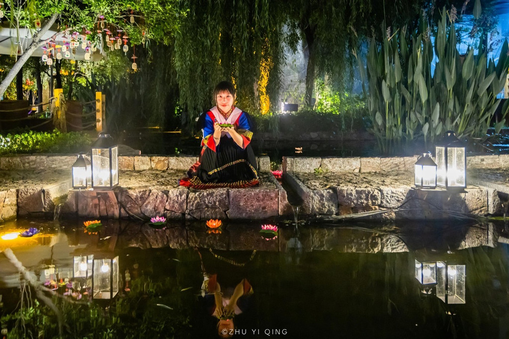 晚上还有放河灯、挂祈福牌的活动,在夜色下,将一盏盏花灯放逐在庭院里的河水中,浪漫又充满情调,美丽的花灯随波逐流,里面寄托着我们美好的愿望和祝福,在丽江感受放花灯的仪式感,又是别样的风情。