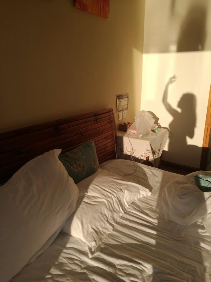今天早上就要回去了,4点半就起来想看星星,结果云太多了没看到,于是等天亮了支起三角架给自己自拍了几张起床照