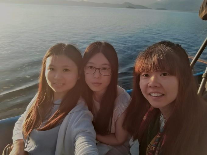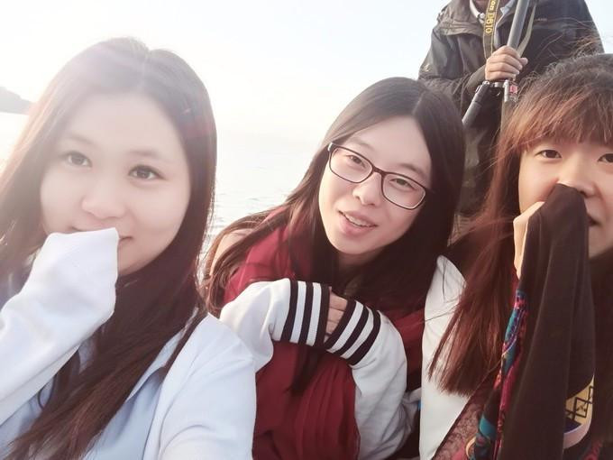 上岸后俊哥在甲板上给我们拍照,说趴地上就趴地上,超级敬业,给俊哥点个赞~大楠姐这张背影好酷