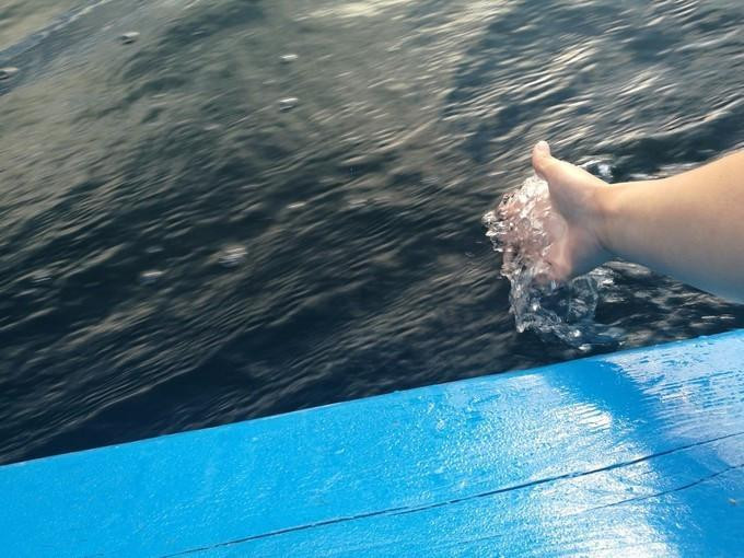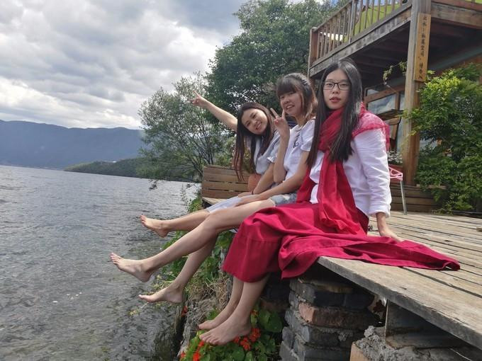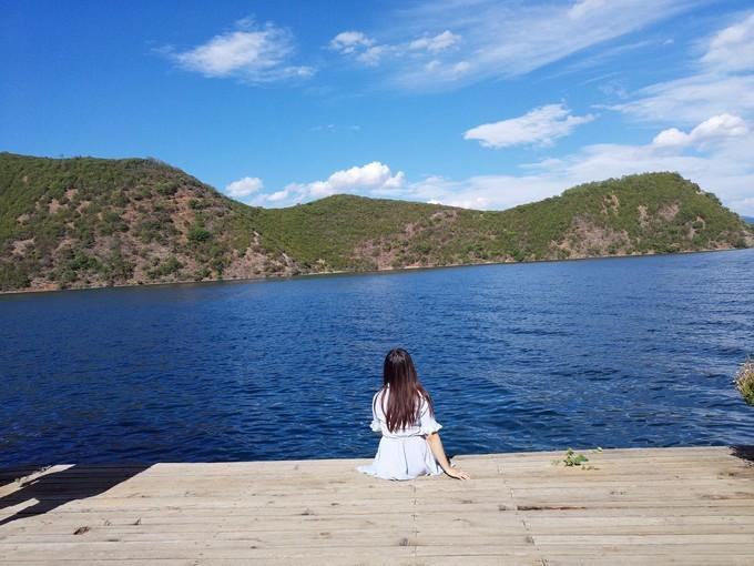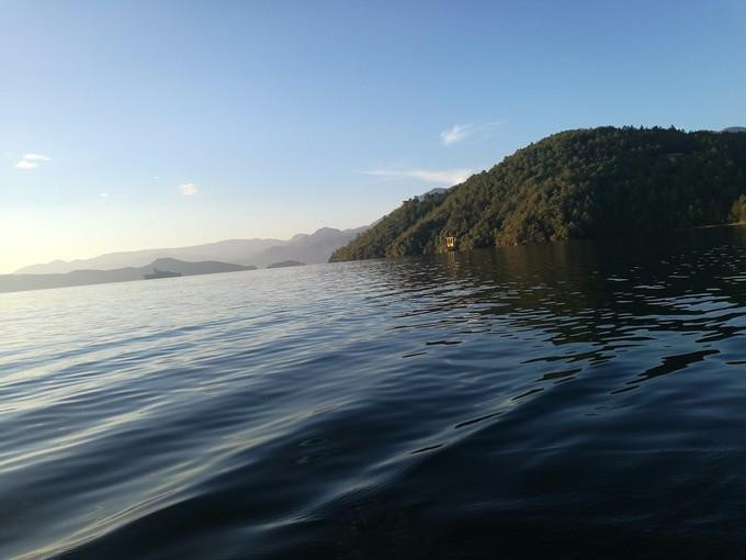 水很清,能见度可达十米。忍不住伸手玩了玩水,凉凉的,但是不冰。听说泸沽湖又名女儿国,传说唐僧师徒取经经过此地,猪八戒喝了这儿的水就怀了孕了。所以我也不敢喝,哈哈