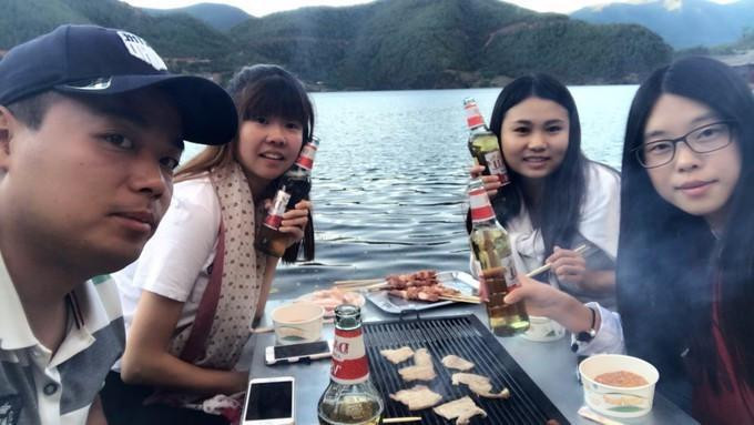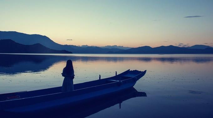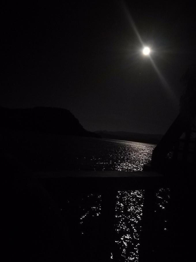 酒足饭饱后小伙伴们把我送回客栈就回了我们昨天住的地方。我洗了澡也睡不着,想着明天一早就得回去了,有点舍不得,于是一个人盖着毯子在阳台上晒月亮,听湖水拍岸的声音,想了一些自己的事情。