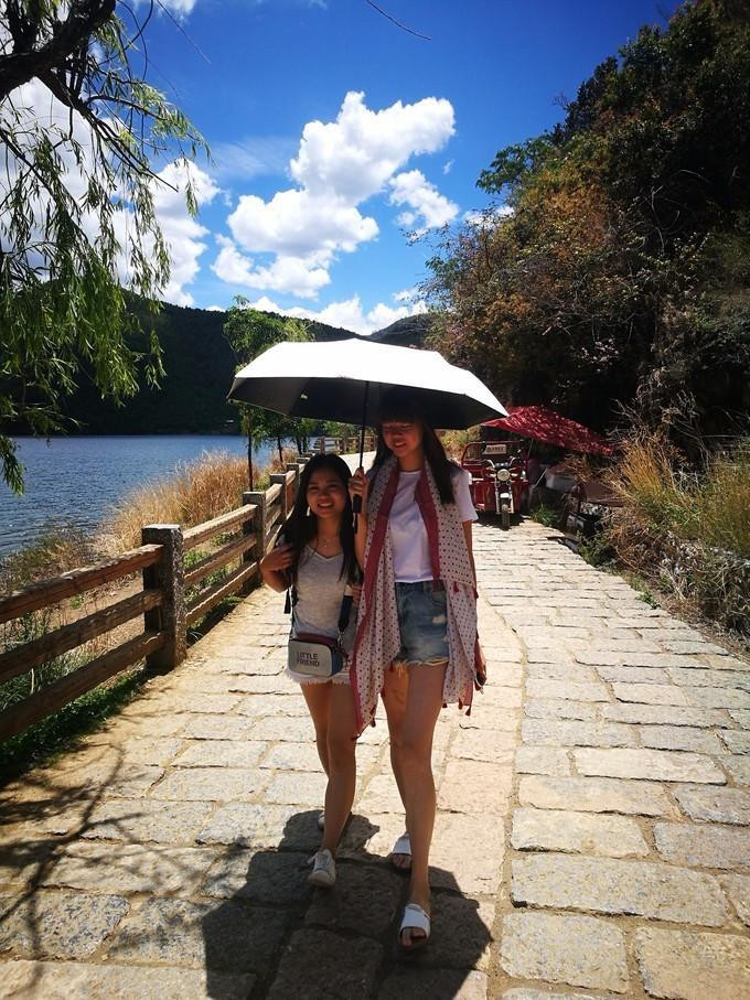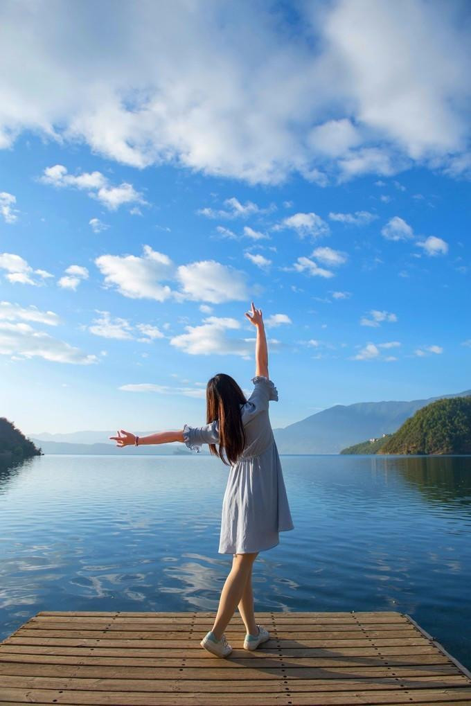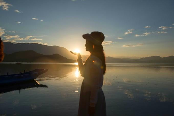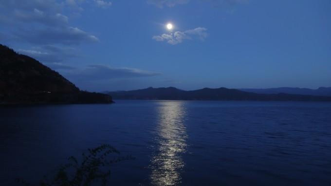 旁晚的时候在摩梭人村寨里面看篝火晚会,我兴致阑珊,于是想出去湖边走走,离村寨最近的湖边是云南和四川交接的地方,大概又两公里左右,天色渐晚,我得找一个人陪我,看到一个独行的姐姐,我便问她要不要跟我一起去湖边走走,她同意了,我俩边走的时候,她跟我聊了一些自己的私事,独自出来也是为了散散心,有时候我觉得一些事情,你可能不会对你的爱人朋友启齿,却会对一个素未谋面的陌生人知无不言。我俩走着走着就到了湖边,傍晚这里没有了游客很安静,能听到湖水拍打岸边的声音。一轮圆月从湖面升起,湖水波光粼粼,特别美。