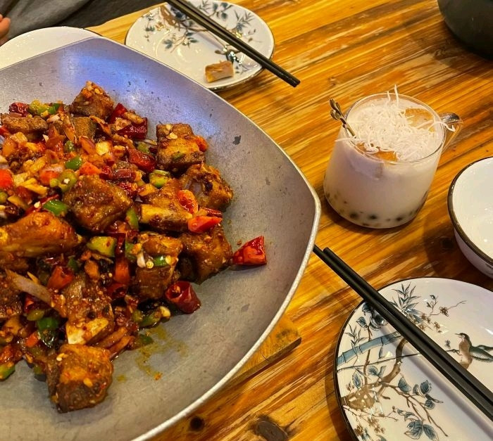 大概11点半的样子就回去了,因为下午要赶飞机,回青旅吃了午饭就准备出发回成都了,午饭的时候小哥拿着铜锣在楼下敲,边敲边喊:开--饭--喽--!