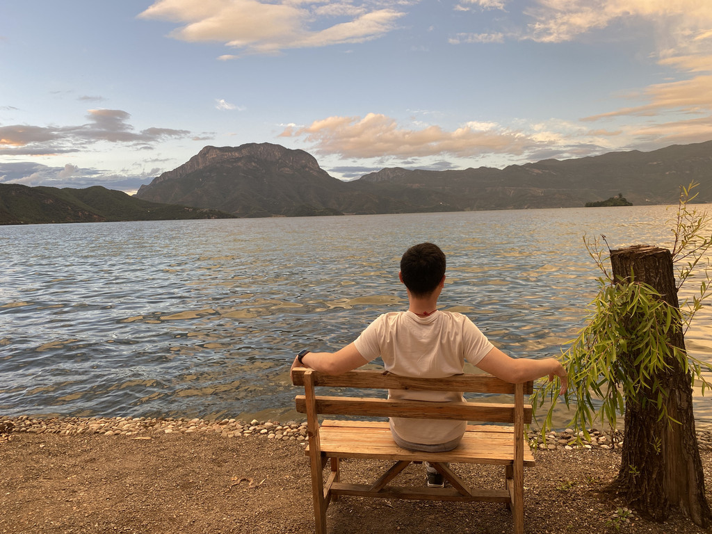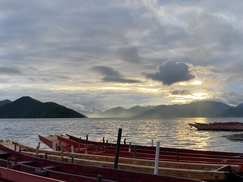 晚上住在大洛水村,房价比丽江的贵,房间却很一般,因为疫情防控篝火晚会停了,选了一家咖啡店欣赏落日,一线湖景,咖啡却普通到不行。相比之下,还是喜欢丽江和香格里拉。
