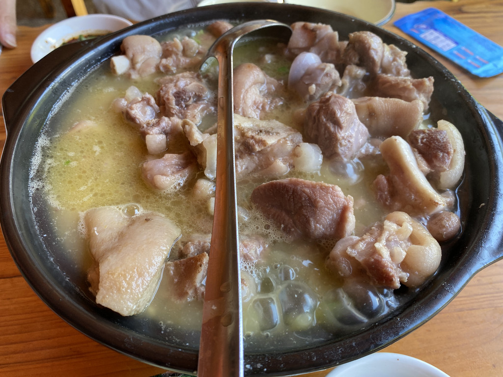 先在白沙古镇吃了滴滴司机2号——追求自由生活的山东小哥推荐的当地人都会去吃的美食——杂锅菜,而原本不喜欢猪蹄油腻的我,居然也吃的欢,汤头鲜美,猪蹄肥而不腻,底下是各种吸饱肉汤的蔬菜,这是美味与健康的化身哈哈。小份只要68元,2个人加个米饭足够吃。