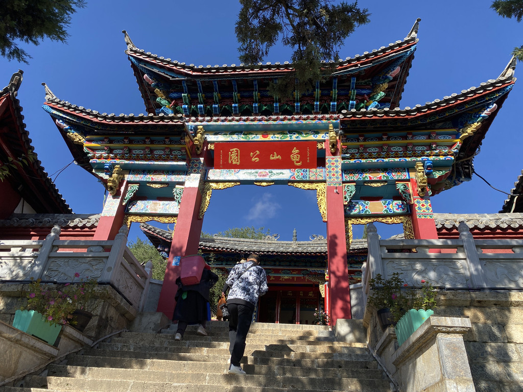 本来想早上退房后直接出发的去普达措公园,早晨在大佛寺的诵经声中醒来,民宿又离的很近,就去龟山公园看了独克宗古城全貌,转了最大的转经筒。