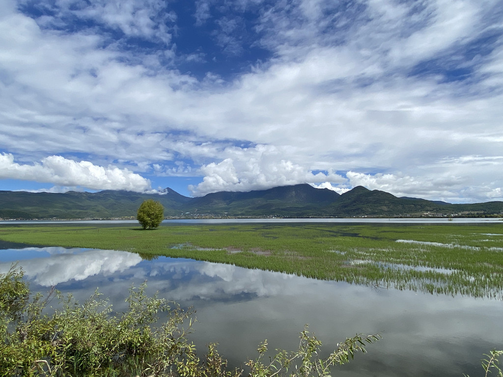 下午天气好,就先去了纳帕海骑马,对,今天想骑马。没有见到纳帕海之前,我以为是个湖,是与洱海类似的那种海。真正到了纳帕海才知道其实是沼泽化的草甸,因为雨季雨水丰厚,所以在草地之间都是水,水面映衬着蓝天和白云。这是雨季来才能看见的风景。骑马的时间长短有3种选择,而我选择了最短的路线(貌似是一个小时,加上拍照的时间),马儿踩进水里的时候我内心是紧张的,担心水太深我也没进去,担心马儿情绪不稳定把我甩下来,哈哈,最终这些担心都没有实现,但是回去后发现我的尾骨处皮肤破了。