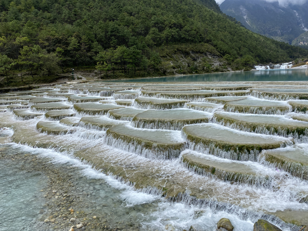 爬山没有费什么力气,所以很快就从雪山下来坐大巴车去蓝月谷。蓝月谷看见很多拍婚纱照的准新人,祝福祝福。