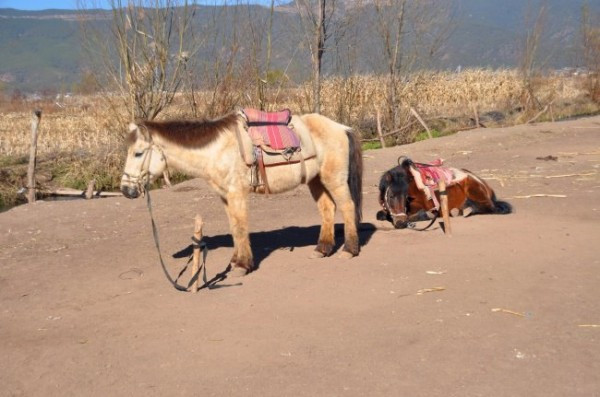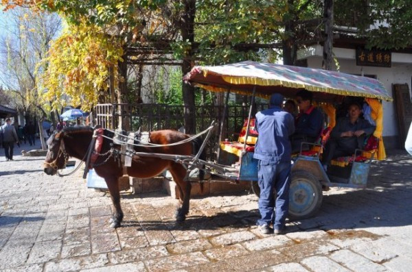 终于好不容易请到了年假,正遇上的机票打折,于是兴冲冲买了机票,带上父母向古城的阳光进发。这次无意中选定的纳美居成就了最棒的选择,史哥和小美姐都是热情好客之人,放好行李首先到小美姐推荐的旁的唠叨坊去填饱肚子。三个人一条纳西烤鱼(40元),一锅热腾腾的腊排骨汤锅(小份,50元,青菜和米饭是自己随意加的),再来一杯酸梅汤(5元),吃得饱饱的,味道也不错。不过对环境挑剔和有洁癖的朋友不适宜前往:)吃完饭沿着漫无目的的闲晃,感觉分外舒畅,走到标志性的大水车后开始返回客栈(这里将是接下来几天重要的跟团集合地点),回程时看到一条帅气而忧郁的狗狗,我凑上去给它拍照时,它哀怨地看我一眼又趴下了。