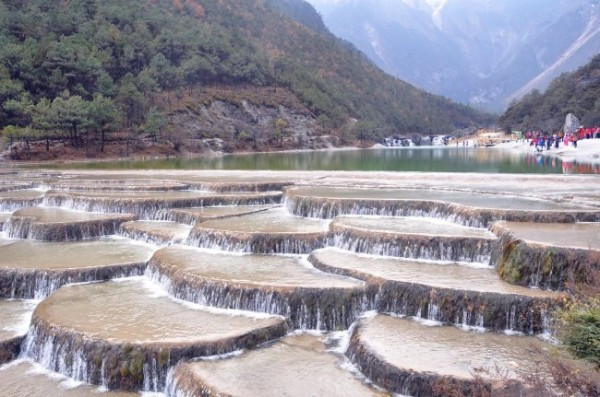 往下走时,因为大风山顶形成了厚厚的雪雾告别 ,下一站就是 ,实际上这是同一个地方,只是因为它会因季节等原因呈现不同的色彩和风貌。在这边可以选择沿途步行,也可以选择乘车电瓶车。 河是第一站,层层叠叠的瀑布是它的特色,这边的水体相比下游来说是偏绿色的,而且来这里一定要好好洗洗手,因为洗一次有官运、洗两次有财运、洗三次有桃花运,所以略显冰凉的湖水还是吸引了大帮游客来此洗手。从白水河向下还有好几个湖泊和小瀑布,就我个人而言,最偏爱的还是玉液湖,因为湖水含铜,所以呈现出一种动人心魄的蓝色。