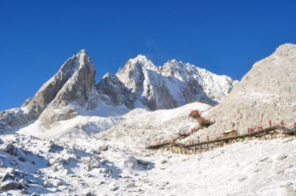 几年前也跟着公司的同事一起来过玉龙雪山,不过那时一上4506米就觉得心跳突然加快,根本没敢再往上走。而这次为避免历史重演,特意提前让老爹买了红景天泡水喝,再加上红景天的胶囊,果然产生了效果,虽然途中不得不停下来适应稀薄的氧气带来的身体反应,但是最后没吸一口氧气我也爬到了4636米(要不是时间问题,我爬上4680米应该没有问题的),老爹则英勇的爬上了4680米,很是得意了一把。而老妈就差多了,是我们三个中唯一吸氧的,这都怪她觉得红景天泡水不好喝,所以只喝了一两天就停了。