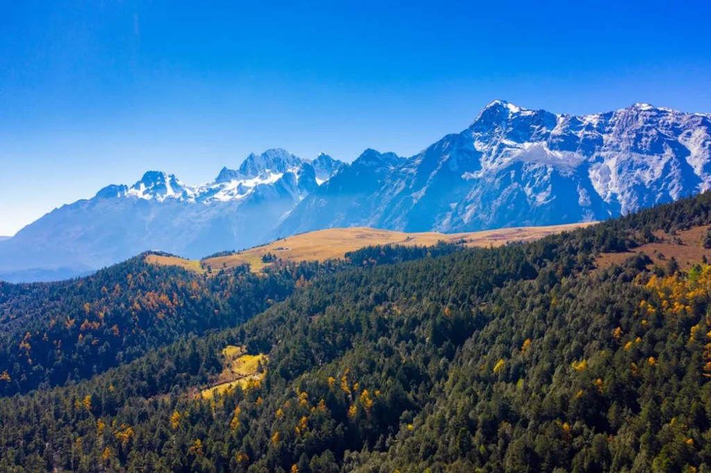 很多角度都可以遥望玉龙雪山。