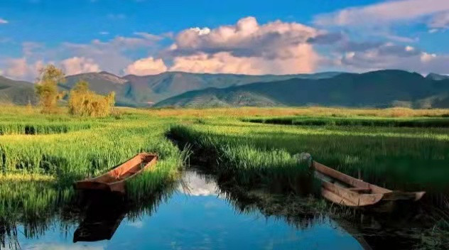 15000亩草海,几十种水生植物,奇珍异鸟。草海两边是芦苇荡,水质清澈,船只就在水道空隙里穿行,从草海可以直接到达王妃岛和亲爱的客栈拍摄地