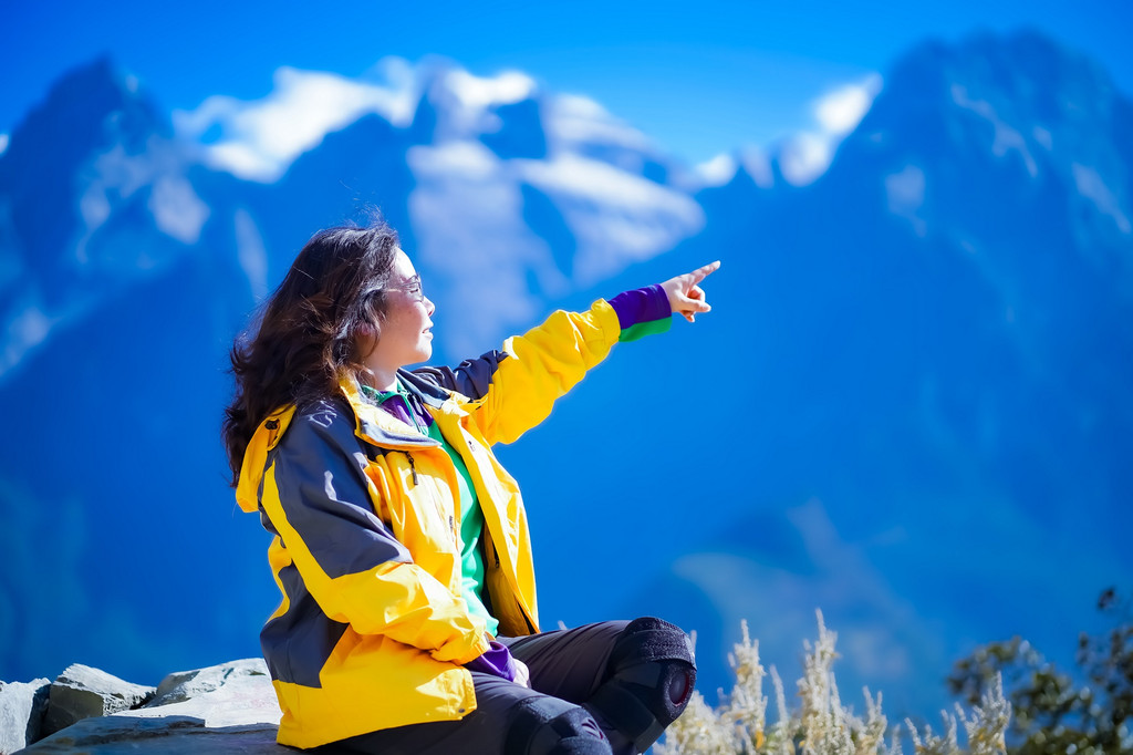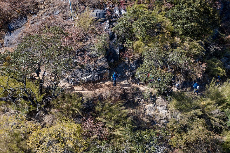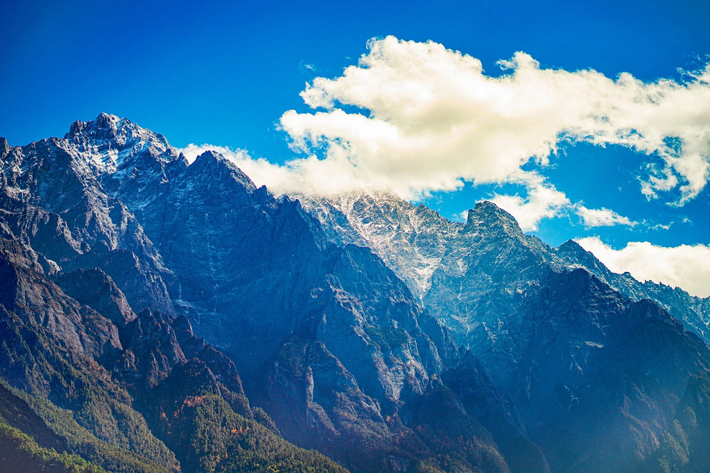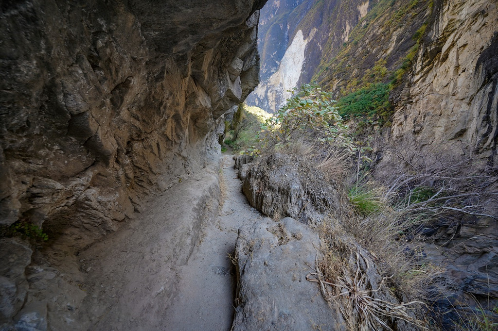 虎跳峡高路徒步线在玉龙雪山和哈巴雪山之间,崇山峻岭,河流湍急,走在山间,蓝天近在咫尺,仿佛触手可及。